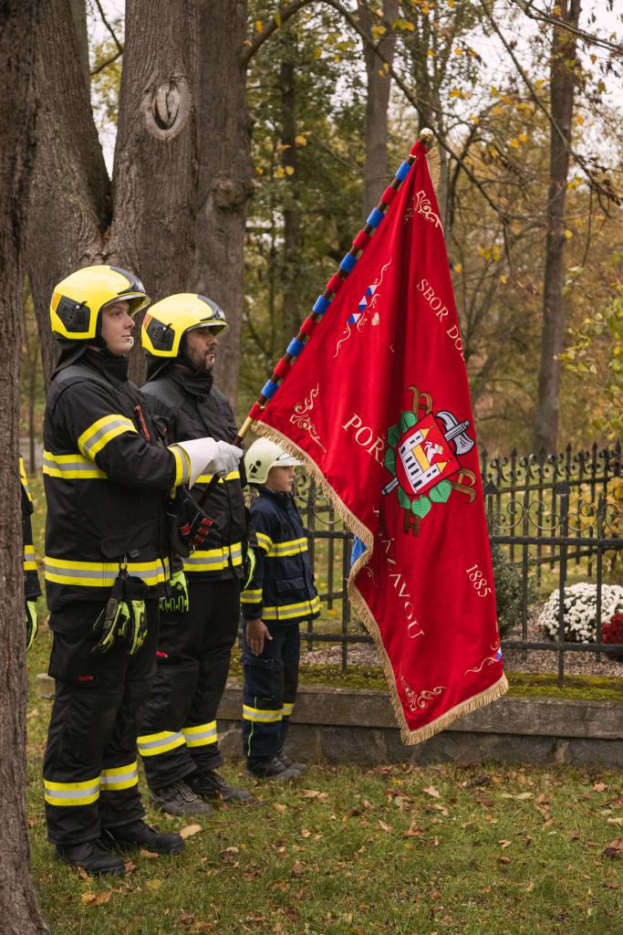 Při krátkém pietním obřadu doprovázeném československou hymnou položila čestná stráž věnec k památníku pod obecním úřadem. Vůbec poprvé při podobné příležitosti vynesli hasiči také svůj nový prapor.